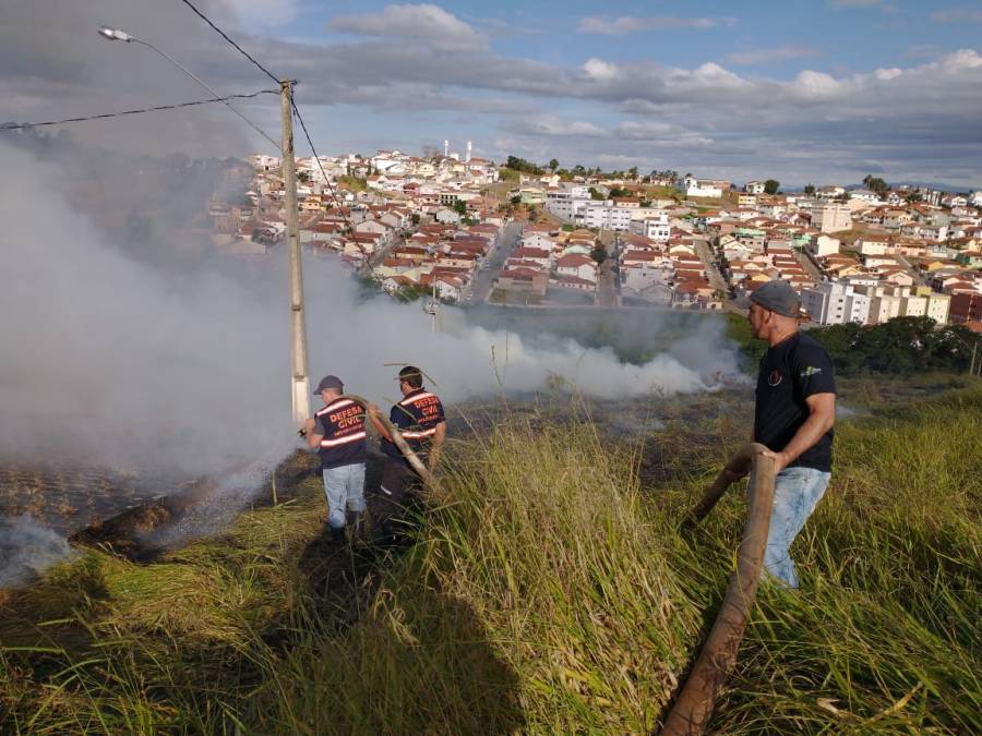 Defesa Civil combate incêndio em pasto