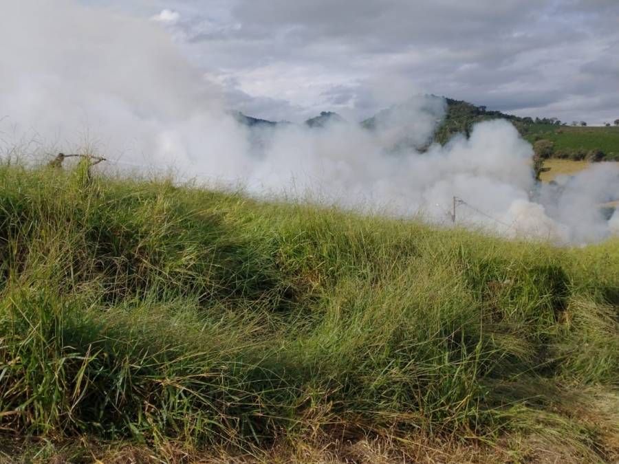 Defesa Civil combate incêndio em pasto