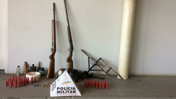 A PM recebeu uma denúncia informando que no local haviam armadilhas colocadas por caçadores para capturarem animais da fauna silvestre e que eles também utilizavam armas de fogo.