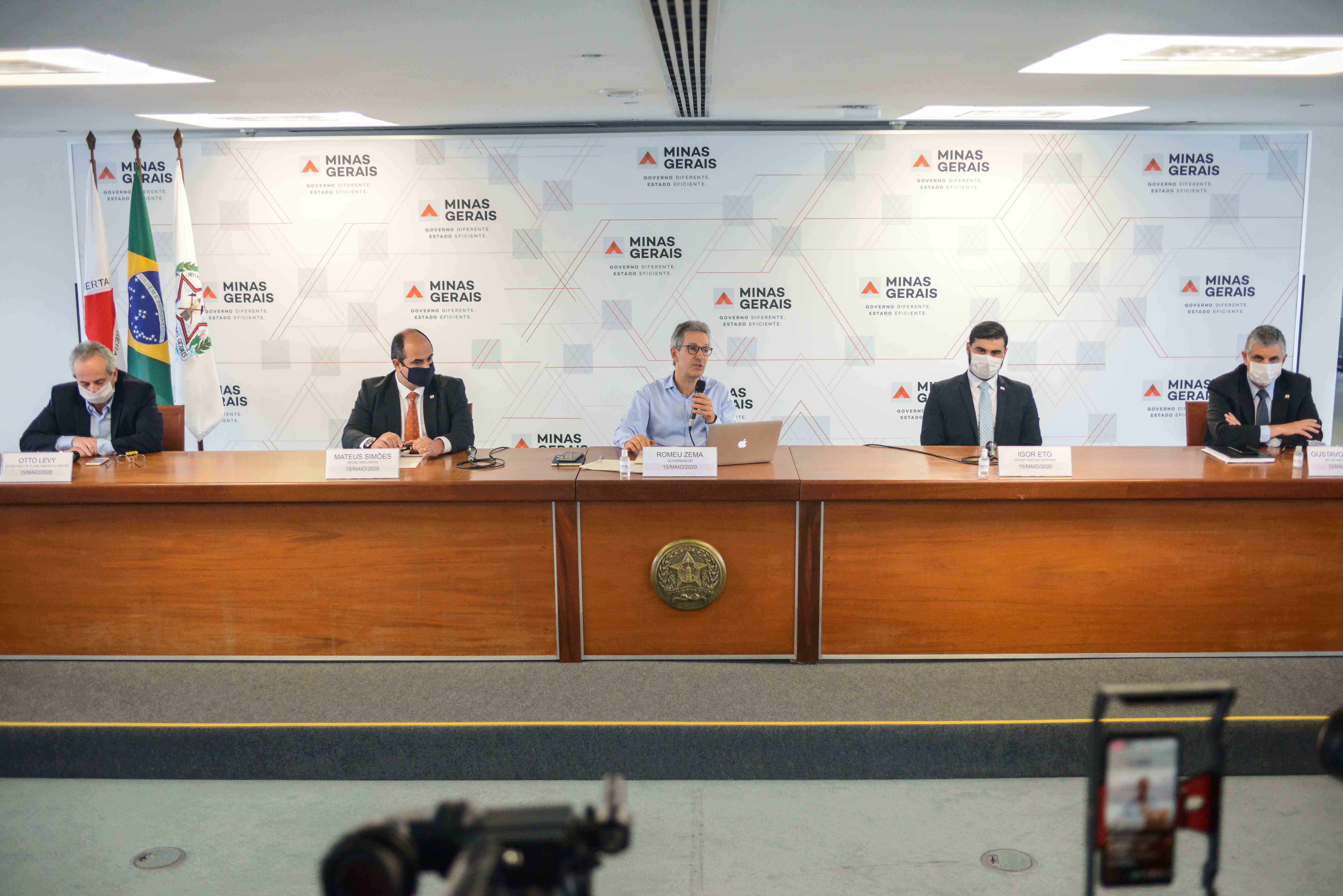 O governador Romeu Zema e secretários de Estado apresentaram, nesta sexta-feira(15/5), durante coletiva de imprensa na Cidade Administrativa, a grave situação financeira de Minas Gerais e seus desdobramentos devido à queda na receita motivada pela crise do coronavírus. Zema ainda pediu compreensão e apoio dos demais Poderes para encontrar soluções que garantam os investimentos necessários na área da Saúde para o enfrentamento à covid-19, além do funcionamento da máquina e a manutenção dos serviços públicos.