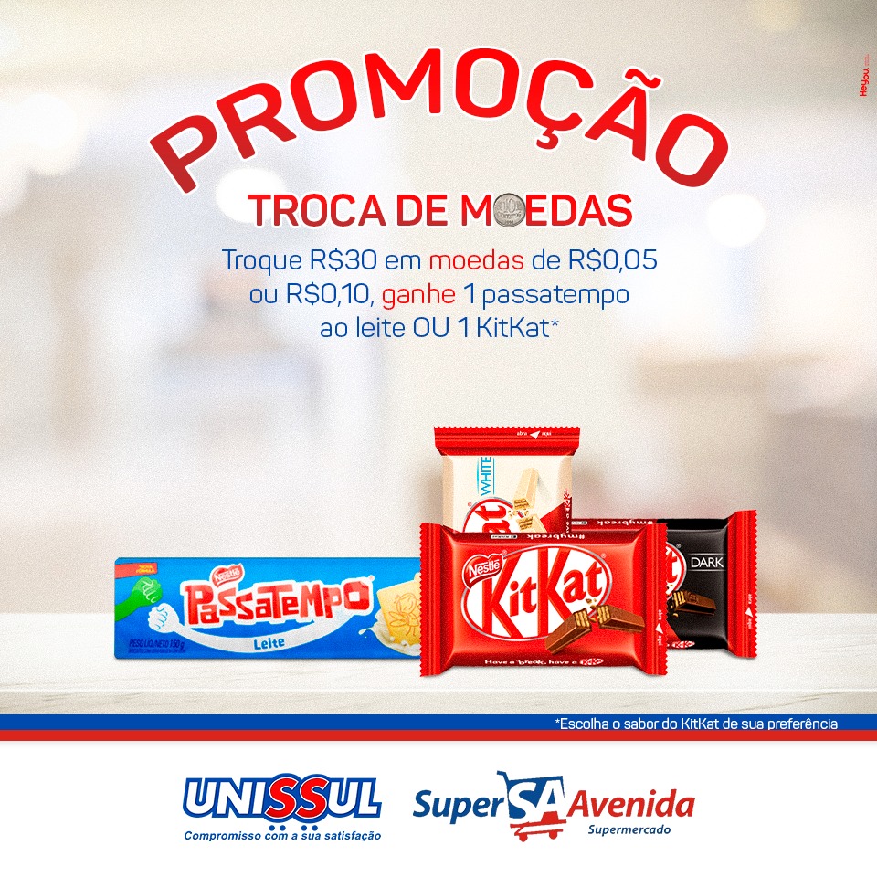 Com a nova promoção do Supermercado Unissul Avenida você ganha um Passatempo ao leite ou um KitKat do sabor que você preferir! 😍