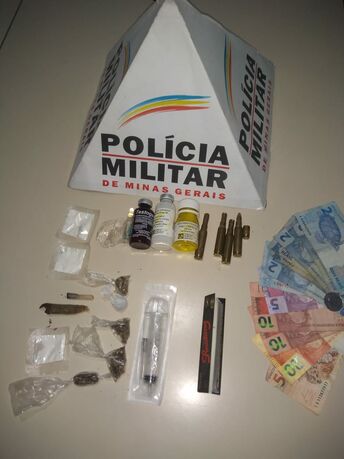Diante dos fatos, foi realizada busca na residência onde foram localizados 3 papelotes de cocaína, 5 buchas de maconha, várias sementes da planta da maconha, 2 cigarros contendo a mesma substância, R$110,00 em notas diversas, além de alguns medicamentos sintéticos e 5 cartuchos deflagrados.