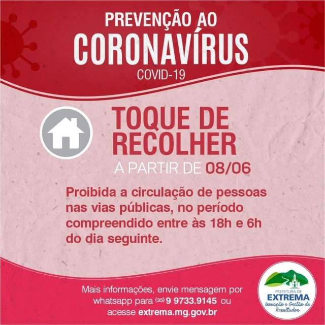 A Prefeitura de Extrema divulgou um novo toque de recolher na cidade.