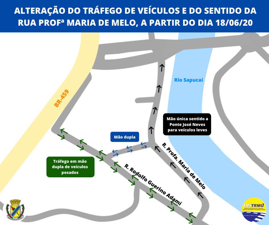 – alteração do tráfego de veículos e do sentido da Rua Profª. Maria de Melo;