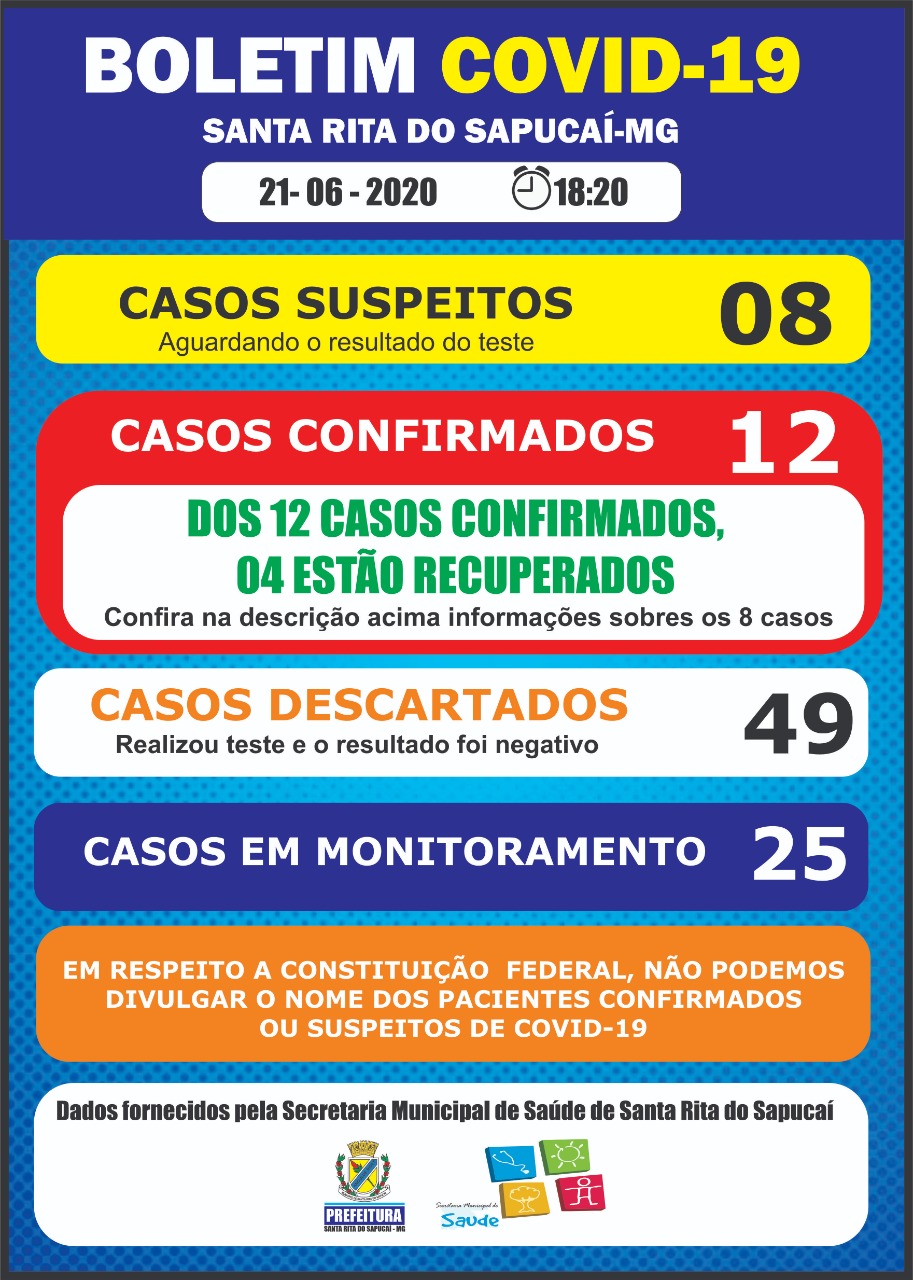 Desses 12 casos confirmados, 04 já não tem mais o vírus, estão RECUPERADOS (curados),