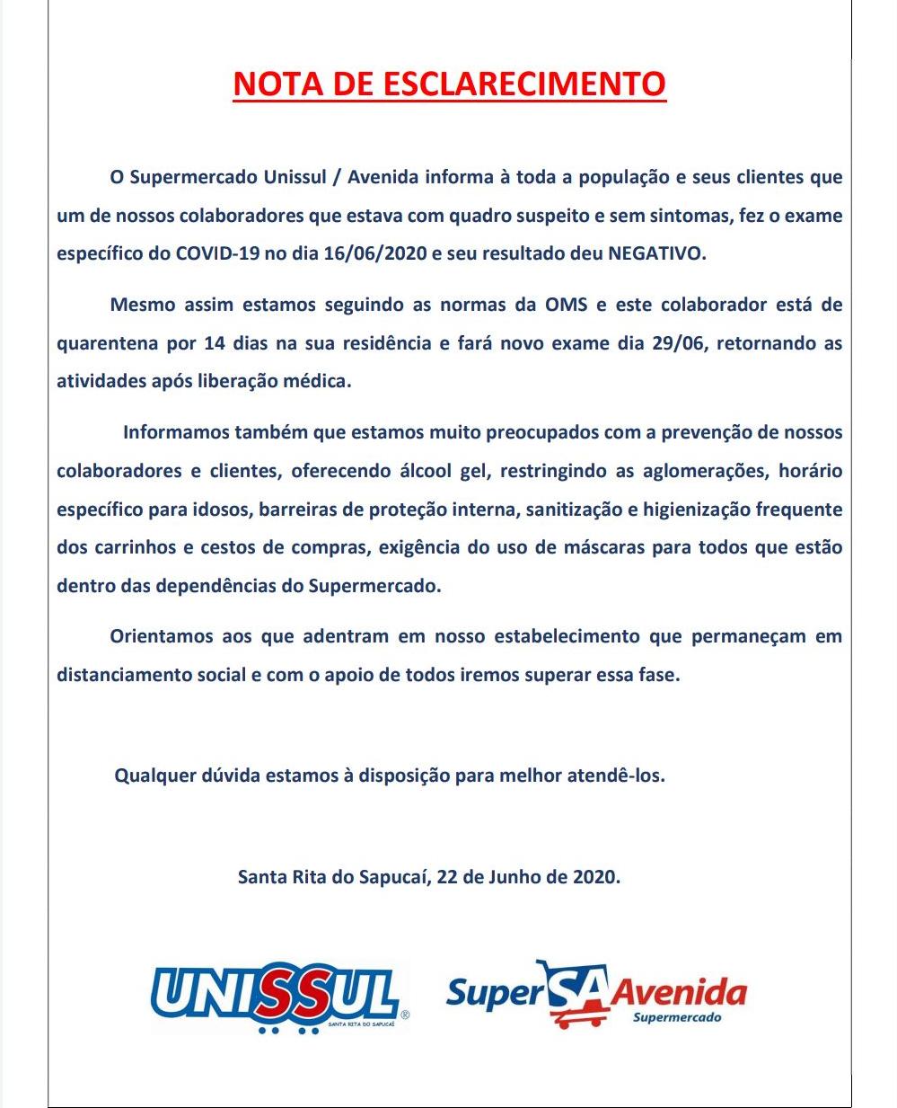Nota de Esclarecimento – Unissul Supermercado Avenida