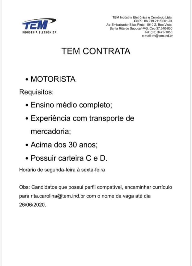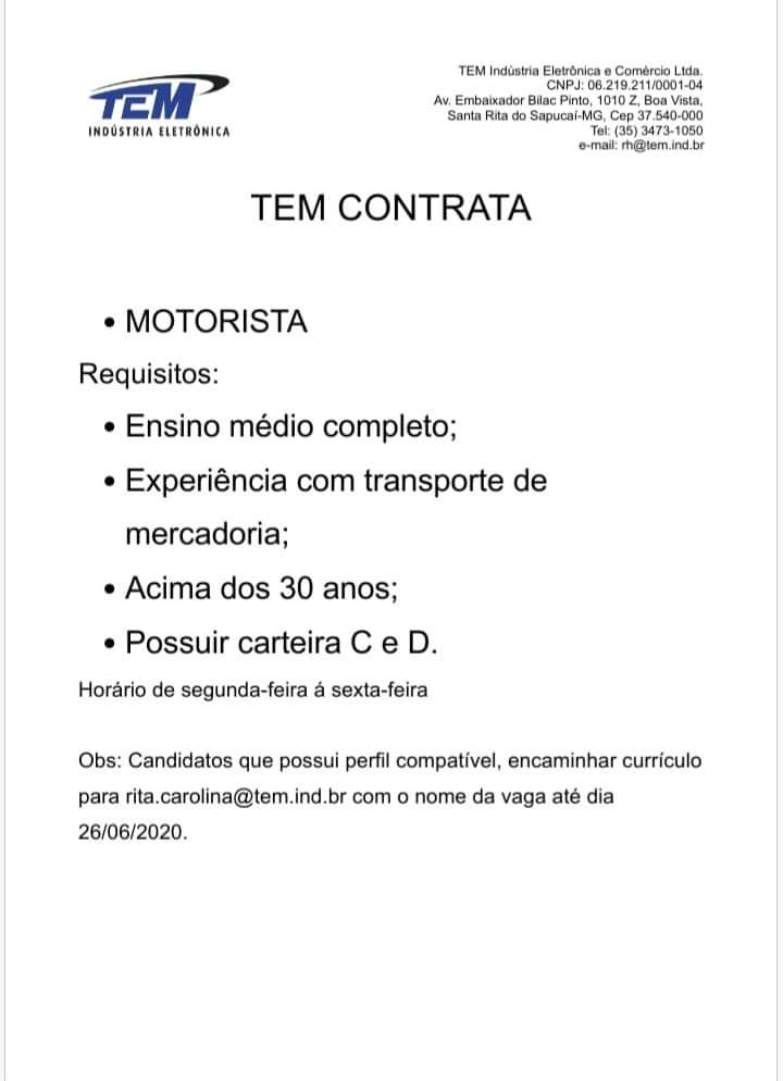 Oportunidade de Emprego – Motorista