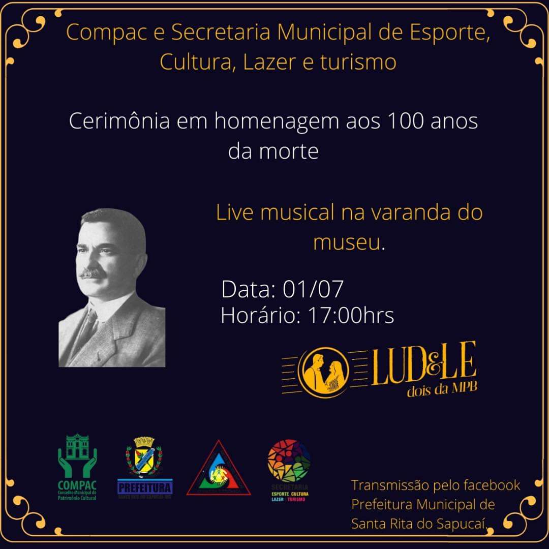 17h00 – Exibição on-line do registro audiovisual sobre a vida de Delfim Moreira è em seguida, live musical na varanda do Museu