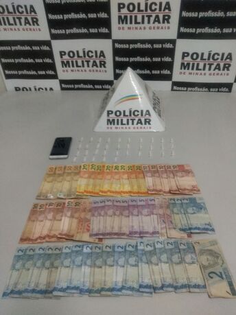 Após busca, foi localizado o valor de R$ 582,00 reais (quinhentos e oitenta e dois reais) e 35 (trinta e cinco) pinos de cocaína.