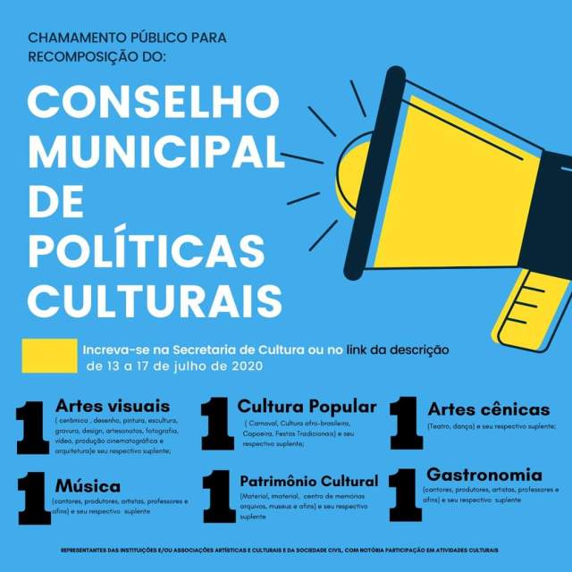 O Conselho Municipal de Políticas Culturais irá realizar eleições para recompor seus integrantes. Se você atua na área e deseja ser candidato nesse pleito fique atento aos detalhes. Vale ressaltar que você precisa obrigatoriamente: