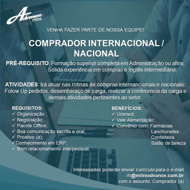 Oportunidade de Emprego – Comprador Internacional / Nacional