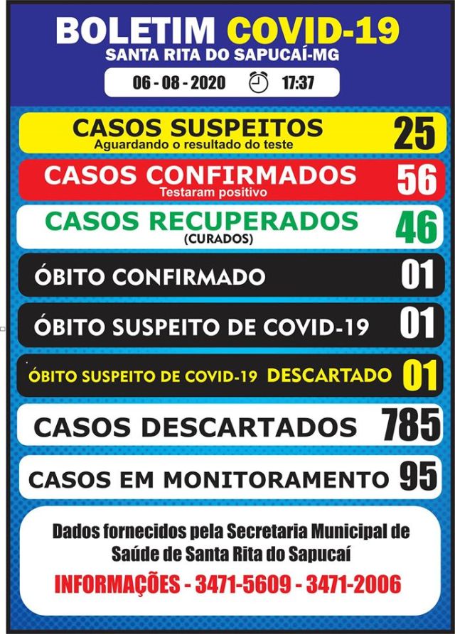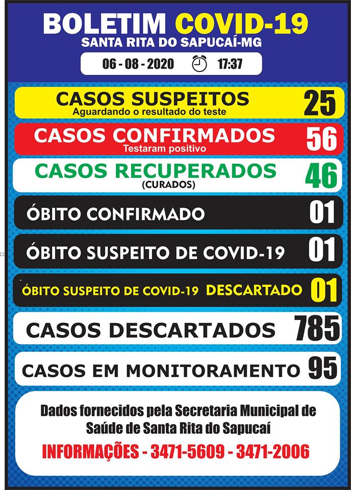 Informamos que logo que o Hospital das Clínicas de Itajubá notifique oficialmente a Secretaria Municipal Saúde de Santa Rita do Sapucaí sobre o caso do Monsenhor José Carneiro Pinto, atualizaremos as informações do boletim.