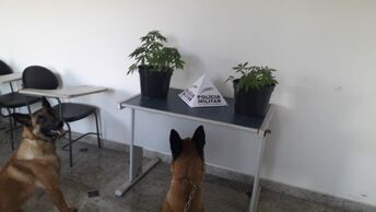 A equipe da PM de Rondas Ostensivas com cães – ROCCA apreende pés de maconha