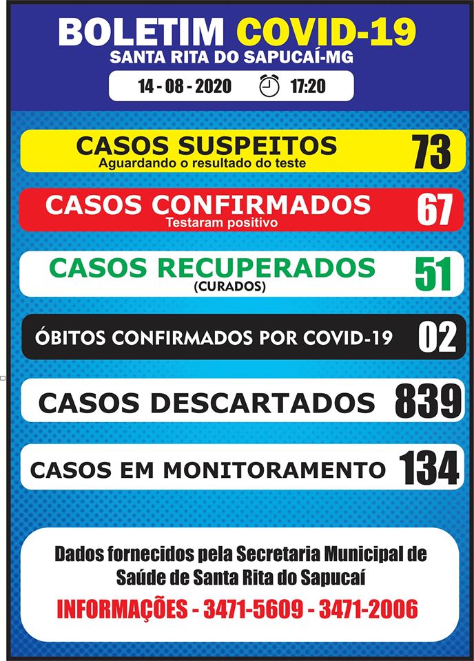 67 casos confirmados – 51 recuperados – 2 óbitos = 14