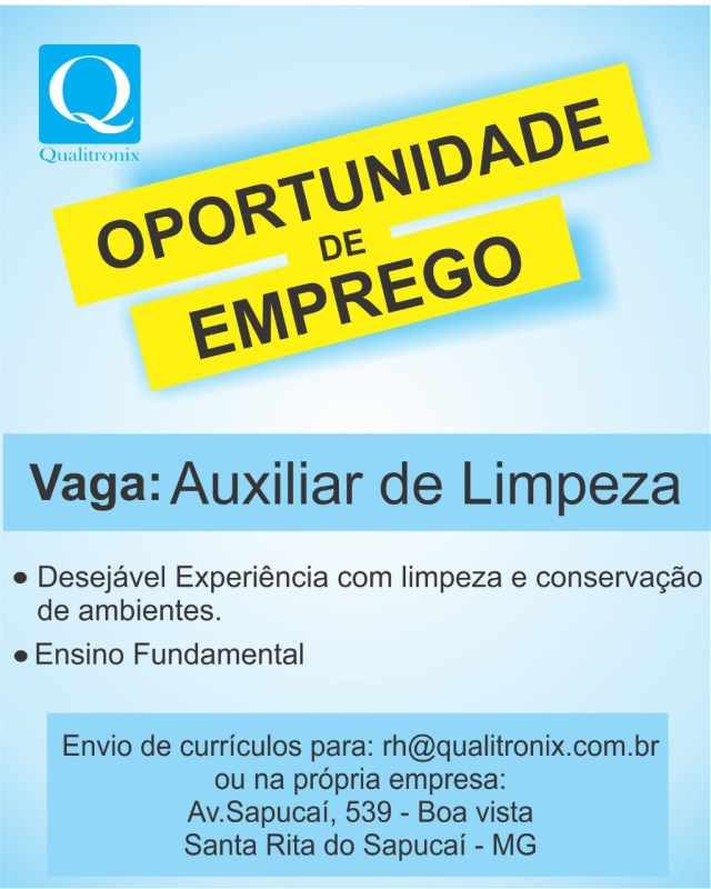 Oportunidade de Emprego – Auxiliar de Limpeza