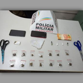 Os policiais militares do Tático Móvel da PM receberam denúncias que havia um jovem realizando comércio ilegal de drogas no bairro. Ao realizarem abordagens e buscas de pessoas suspeitas, encontram com o adolescente apreendido os seguintes materiais: