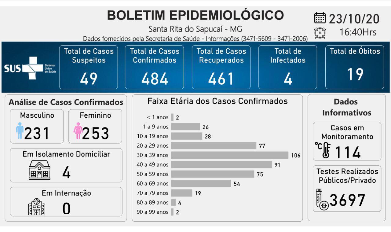 Boletim Epidemiológico de Santa Rita do Sapucaí – 23 de outubro de 2020