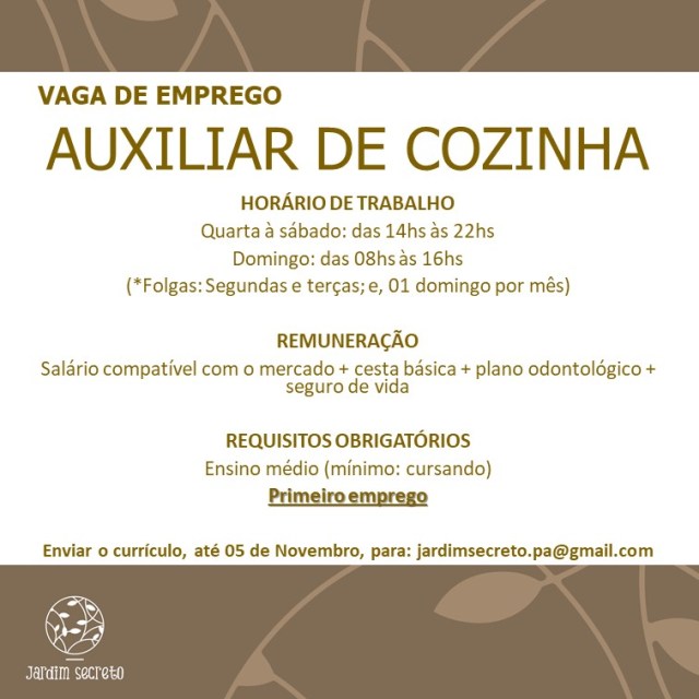 Oportunidade de Emprego – Auxiliar de Cozinha