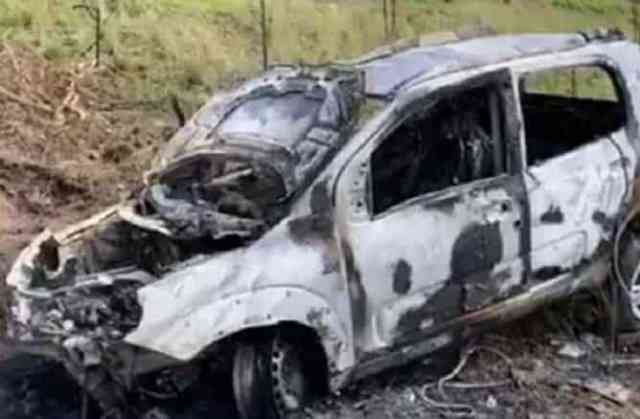 Um carro ficou completamente destruído após pegar fogo na manhã de sábado(31).
