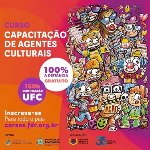 O curso, totalmente gratuito e a distância, tem ceritificação de 160 horas pela Universidade Federal do Ceará, apoio da SecultFOR, e é composto por fascículos, videoaulas, podcasts e webconferências.