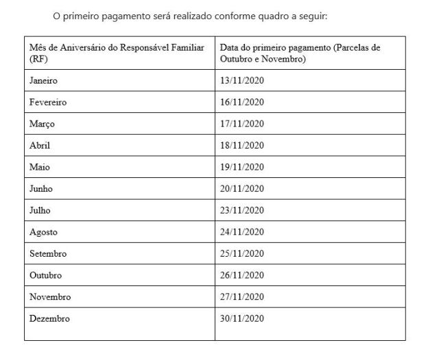 O valor será pago em duas parcelas, sendo a primeira referente aos meses de outubro e novembro. Já a segunda corresponde ao mês de dezembro e será quitada a partir do dia 7/12.