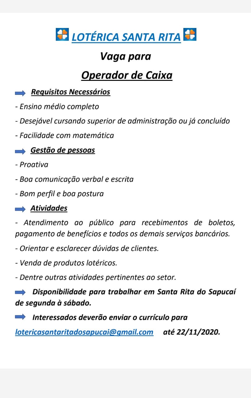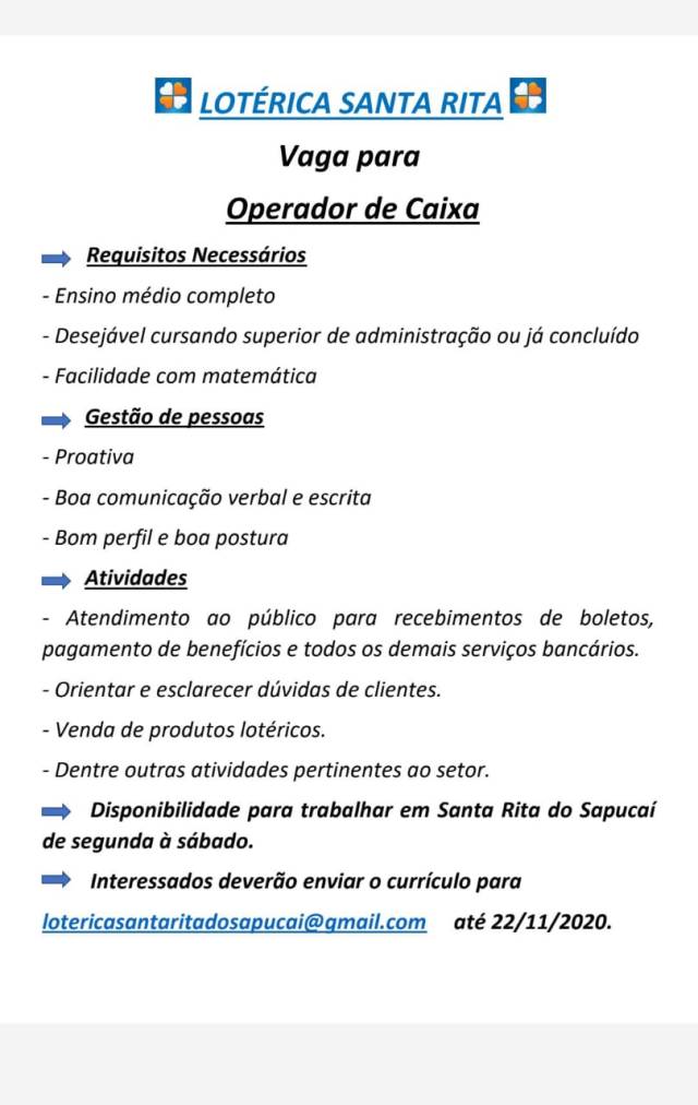 Oportunidade de Emprego – Operador de Caixa