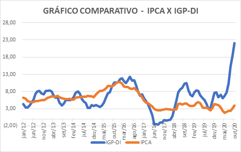 No levantamento da Secretaria de Fazenda ficou demonstrado que, na média histórica, quando comparada à variação do IPCA, a do IGP-DI está bem acima.