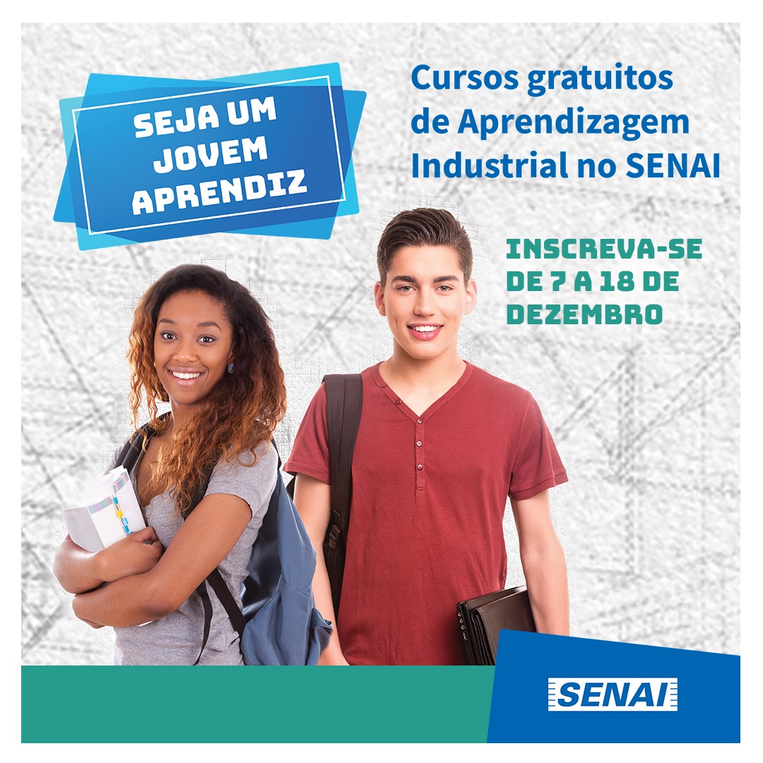 Você que tem 14 a 23 anos e tem interesse em se inscrever em cursos gratuitos de Aprendizagem Industrial do SENAI, SEJA UM JOVEM APRENDIZ.