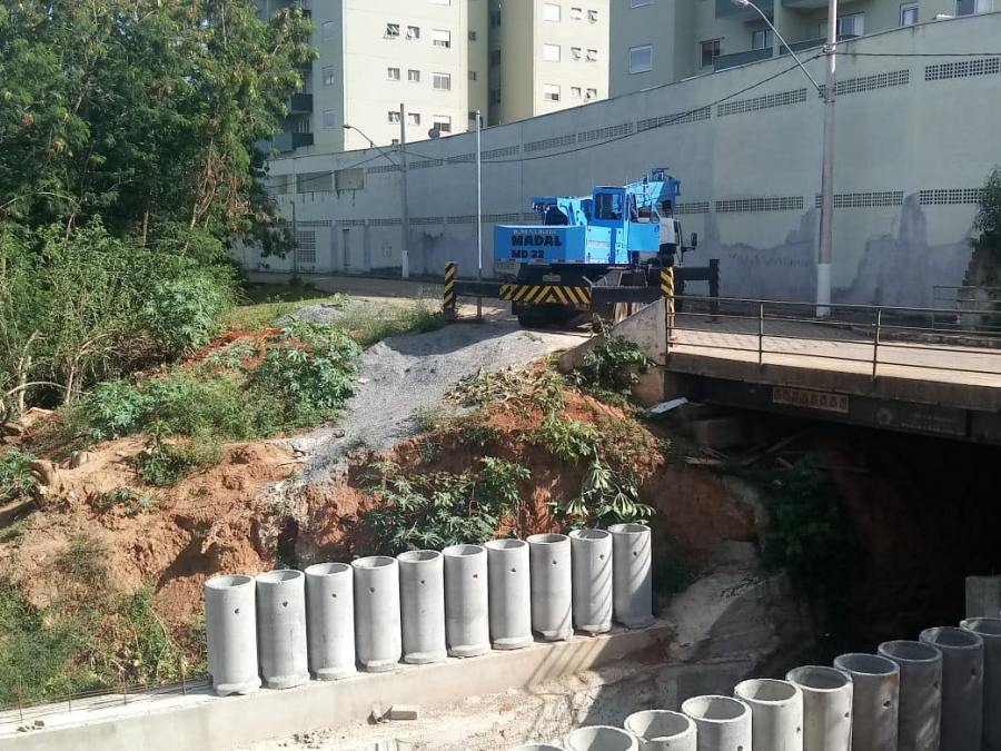 Colocação e concretagem de manilhas na obra do Córrego do Mosquito