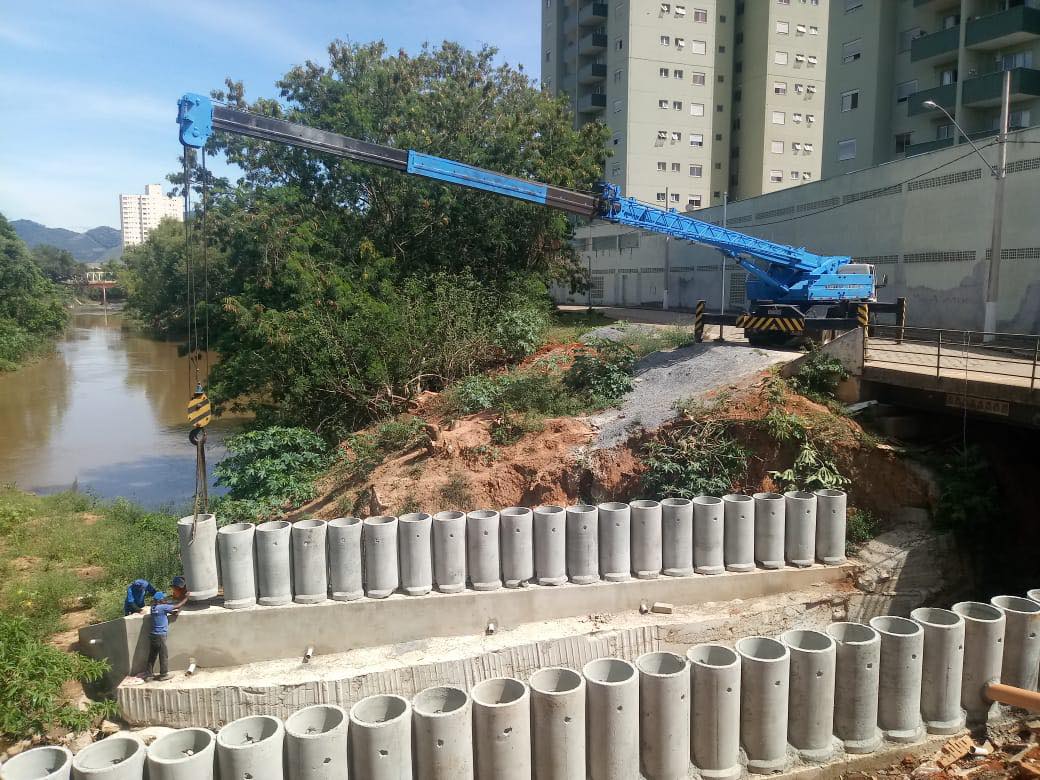 Colocação e concretagem de manilhas na obra do Córrego do Mosquito