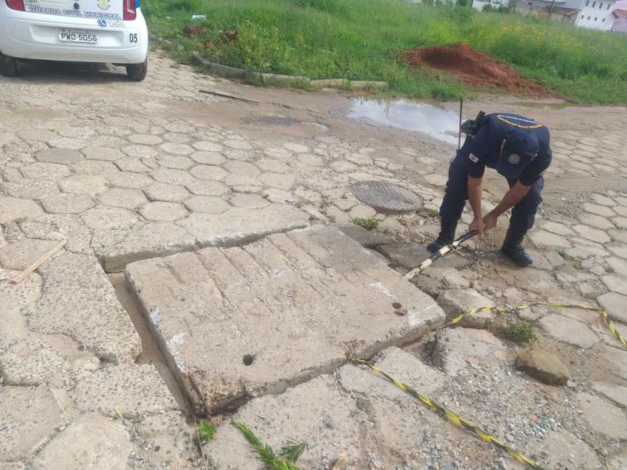 Guarda Civil Municipal recoloca tampa de bueiro no lugar