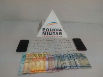 Ao ser abordado, o primeiro menor portava 14 (quatorze) pedras de crack, 01 (um) celular e R$ 38,00 (trinta e oito) reais. O segundo adolescente estava com 60 (sessenta) pedras de crack, 01 (um) celular e R$ 17,00 (dezessete) reais.