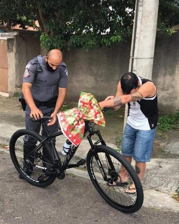 Sensibilizados, os policiais buscaram apoio junto à comunidade e neste Natal puderem levar o presente ao cidadão, que não precisará mais alugar uma bicicleta para poder trabalhar!