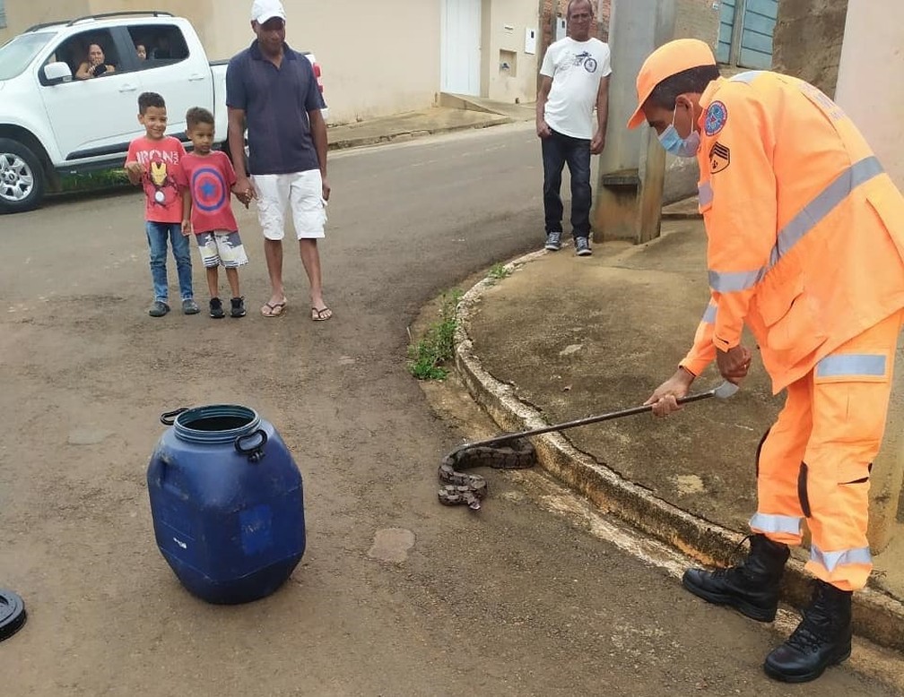Jiboia é capturada no meio da rua em Guaranésia