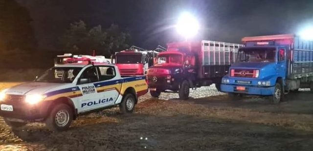 Imediatamente a PM enviou viaturas de Moema e Bom Despacho para a fazenda. Quando chegavam na propriedade os militares deram de cara com dois caminhões boiadeiros saindo carregados de animais. O caminhão que vinha na frente foi cercado e seu motorista recebeu voz de prisão. Já o motorista do outro caminhão, que vinha mais atrás, ao ver a PM saltou do veículo e se embrenhou no mato.