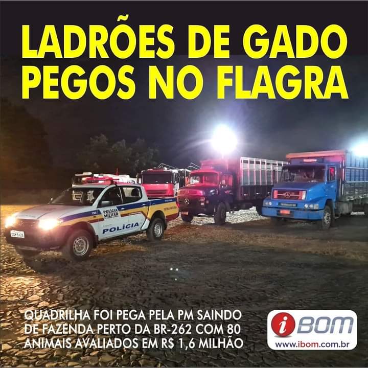 Três homens foram presos pela Polícia Militar na madrugada de quarta-feira(30) quando roubavam 80 cabeças de gado numa fazenda no município de Moema, a 1 km de distância da BR 262.