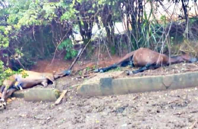 Dois cavalos são mortos após queda de árvore sobre um carro