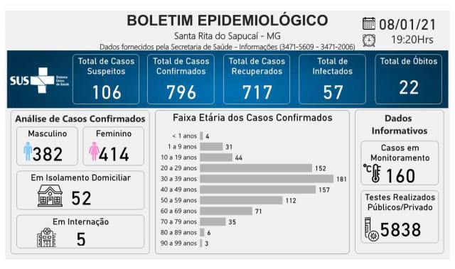 Boletim Epidemiológico de Santa Rita do Sapucaí, 08 de janeiro de 2021