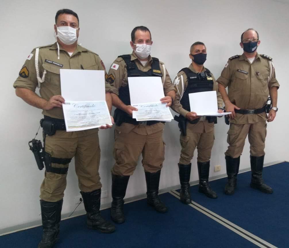 Os militares agraciados foram Sgt PM Avival atual Comandante do 3° Grupamento de Polícia Rodoviária com sede em Santa Rita do Sapucaí, CbPM Robson e CbPM Assis, na foto juntamente com Major Barros Comandante da 17a CIA de Policiamento Rodoviário com sede em Pouso Alegre.