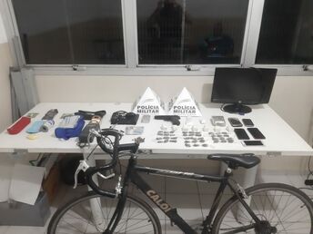 Os militares, após diligências, localizaram dois autores e com eles foram apreendidos os seguintes materiais: