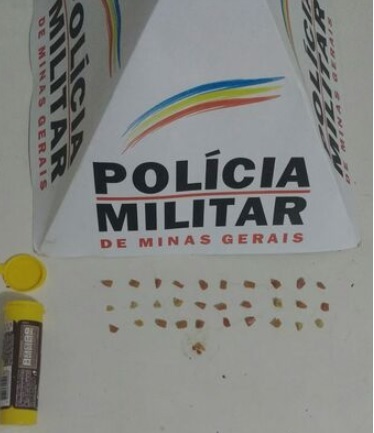 Os policiais militares depararam com um homem em atitude suspeita, no bairro São Geraldo. Durante a abordagem policial, o autor dispensou ao solo um recipiente plástico, o qual continha 31 pedras de crack.