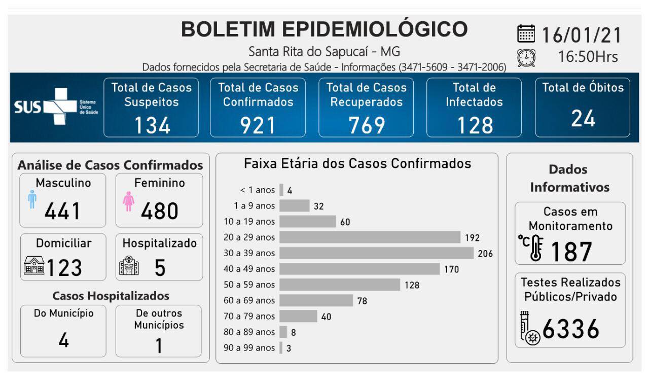 Boletim Epidemiológico de Santa Rita do Sapucaí, 16 de janeiro de 2021