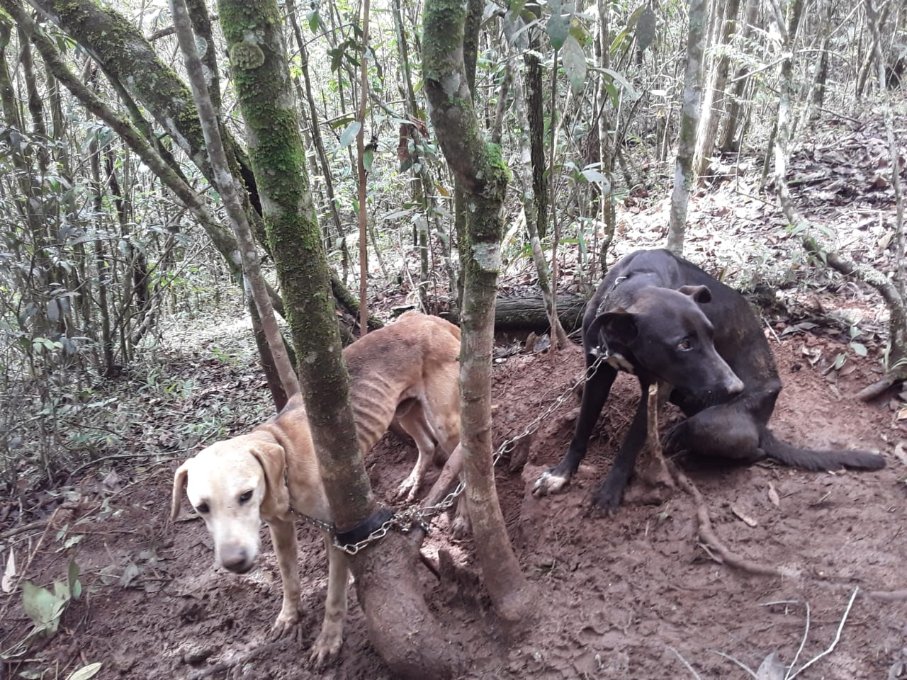 Corpo de Bombeiros regata cães acorrentados e abandonados