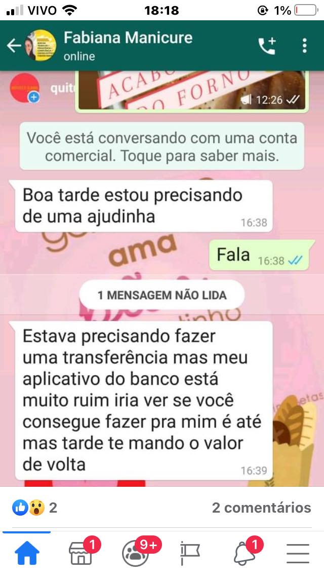 O WhatsApp de Fabiana Ribeiro, manicure foi clonado.