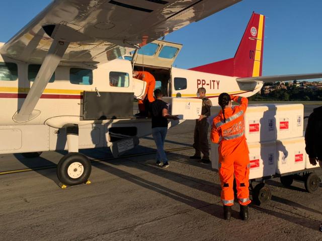 De um total de 577.480 doses de vacinas, 57% foram transportadas por cinco aviões e três helicópteros da frota do Estado e outras 43% por caminhões para as regionais de Divinópolis, Sete Lagoas, além da capital mineira.