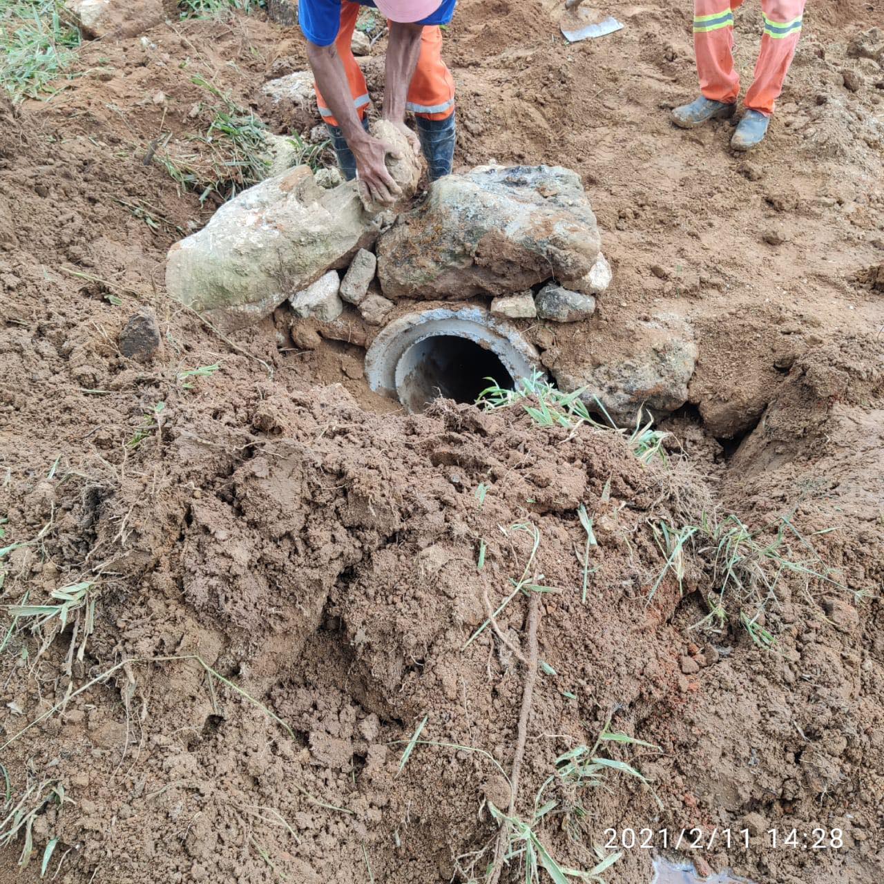 Manutenção de bueiro entupido no Bairro dos Vilelas
