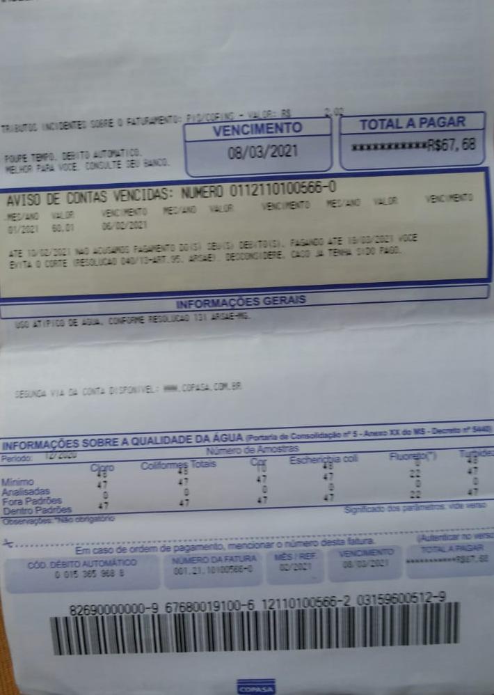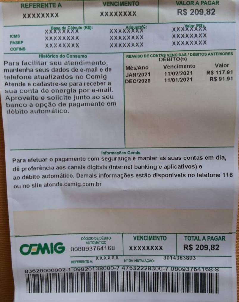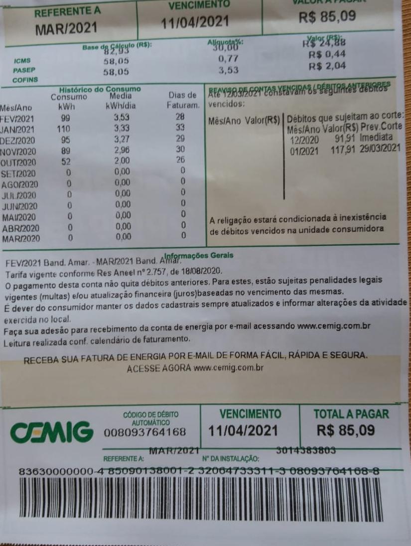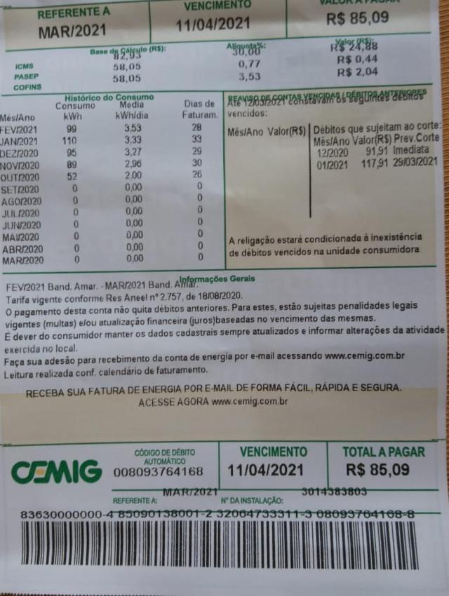 Não conseguiu benefício junto ao INSS e está com contas da CEMIG e COPASA em atraso.