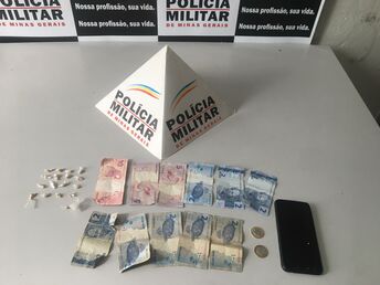 Durante a abordagem foram encontrados 17 pedras de crack, 1 celuar e R$ 38,00 (trinta e oito reais).