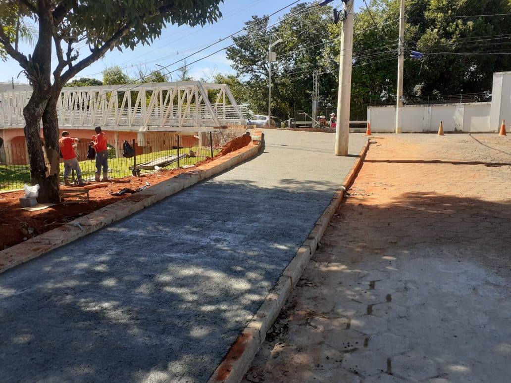 Concretagem da rampa de acessibilidade para a finalização da passarela