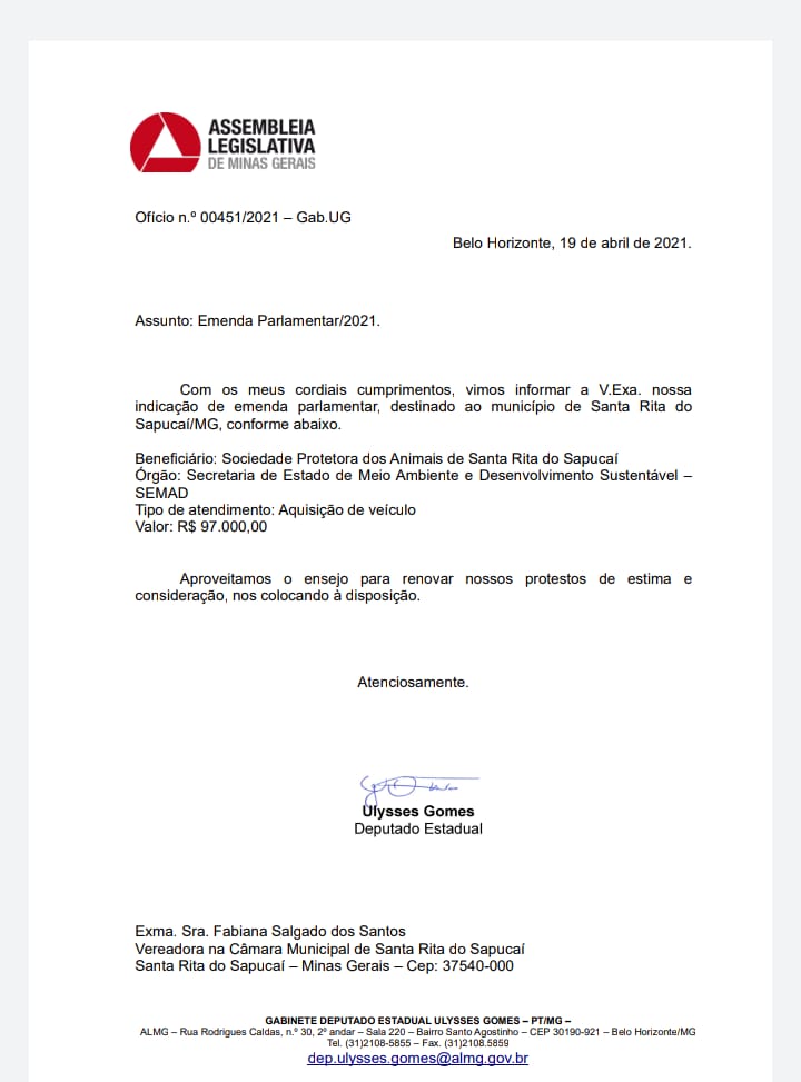 SPA RECEBE EMEMDA PARLAMENTAR PARA AQUISICÃO DE VEÍCULO